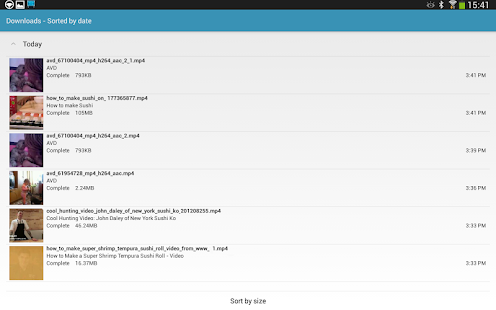 In the browser simply click on the video link that you wish to download. From the Action menu, select Video Downloader, and the download should start automatically. You should be able to see the download progress in the notification bar (at the top of the screen).